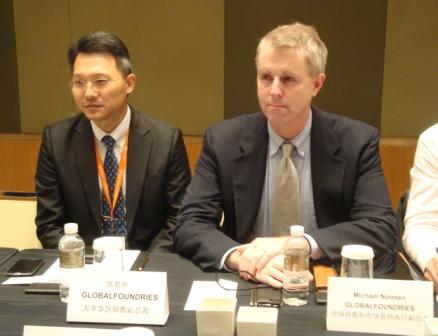 GLOBALFOUNDRIES大中華區(qū)銷(xiāo)售副總裁陳若中(左)與全球銷(xiāo)售和市場(chǎng)營(yíng)銷(xiāo)執(zhí)行副總裁Michael Noonen(右)答記者問(wèn)