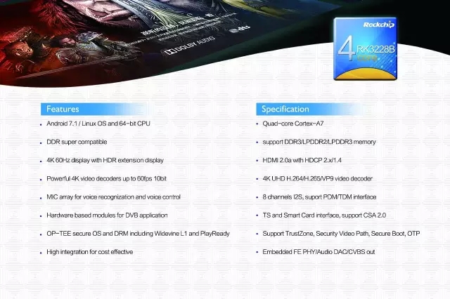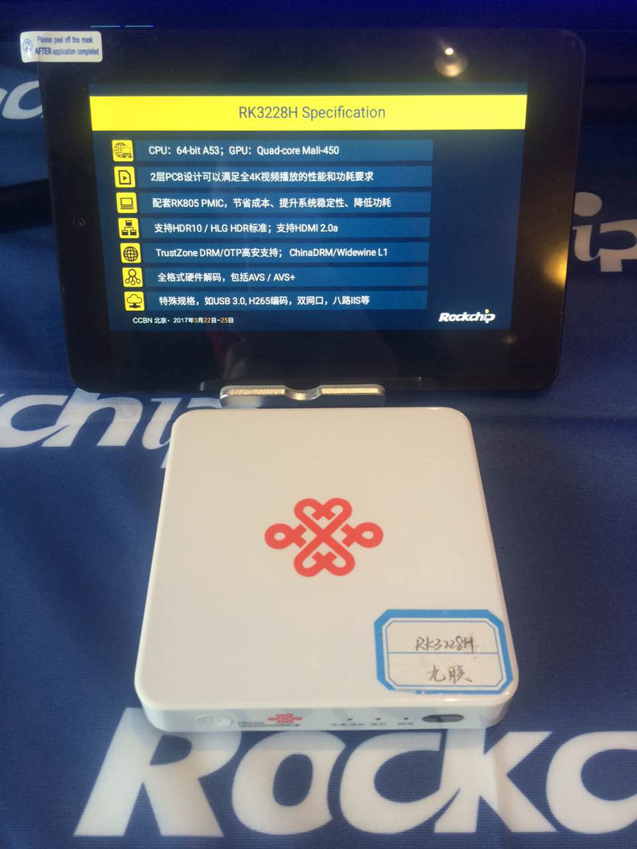 Rockchip在CCBN2017展出搭載四核超優(yōu)性價(jià)比的機(jī)頂盒芯片產(chǎn)品RK3228B以及高性能的機(jī)頂盒芯片產(chǎn)品3228H。方案亮點(diǎn)涵蓋: