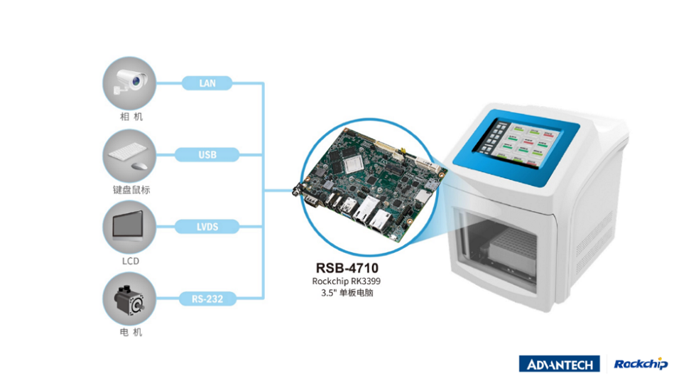 目前,搭載RK3399的研華RSB-4710、RSB-3710單板電腦均已量產(chǎn)并落地。在常態(tài)化疫情防控的今天,大型PCR工作站、醫(yī)用PCR設(shè)備以及小型一體式PCR設(shè)備針對不同使用場景都得到了廣泛的應(yīng)用。