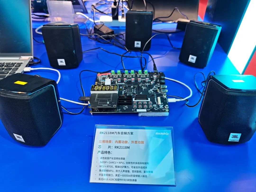 現(xiàn)場展出了數(shù)款基于RK2118M的外置功放產(chǎn)品,已在多個主流新能源汽車品牌落地商用?;诟咚懔Φ墓Ψ偶軜?gòu),RK2118M支持搭載超過20個以上的揚(yáng)聲器,并可以同時支持運(yùn)行環(huán)繞音效、主動聲浪,主動降噪等中高階音效算法。